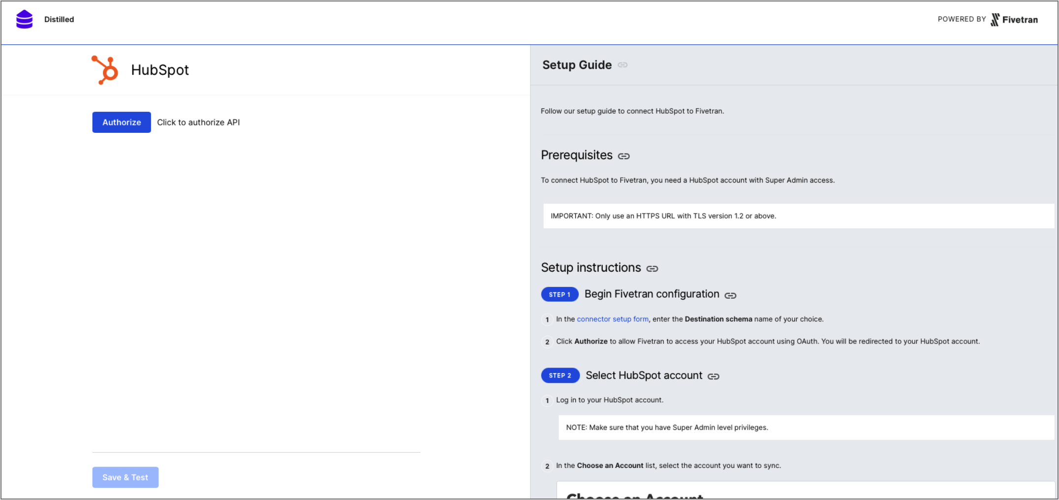 Select Save & Test in the bottom left of the setup form. Untitled will take it from here and sync your data from your Hubspot account to Untitled.