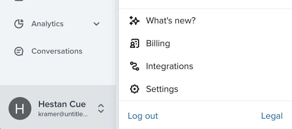 Navigate to the account menu at the bottom left and select Integrations