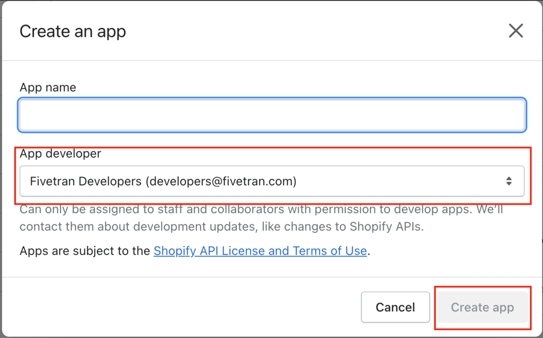 Enter an App name. This can be any name you choose, we suggest an easy identifier such as “Untitled Fivetran.”